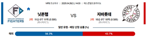 4월 26일 일본야구(NPB) 니혼햄 VS 지바롯데 분석