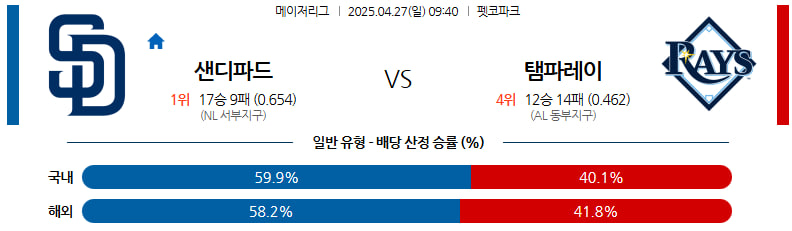 04월 27일 MLB 샌디에이고 탬파베이 분석