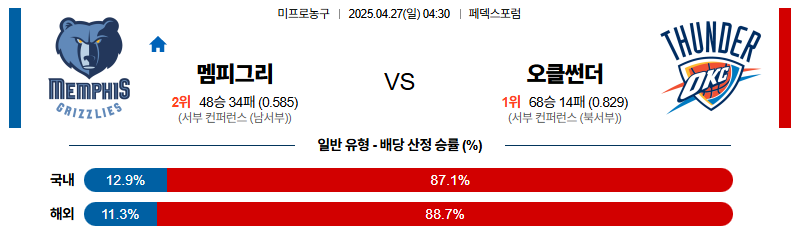 【NBA 】04/27(일) 멤피스 vs 오클라호마