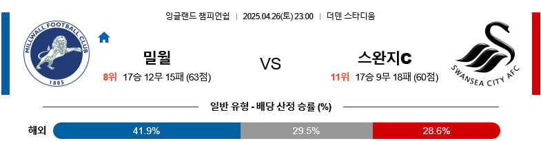 【EFL챔피언쉽】04/26(토) 밀월FCvs스완지시티