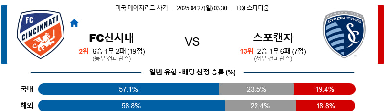 【메이저리그사커 】04/27(일) FC신시내티vs스포팅캔자스시티