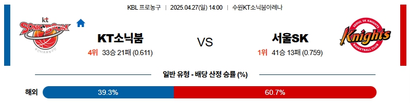 # 홈팀 : 수원 KT 소닉붐(33승21패, 정규시즌 4위)