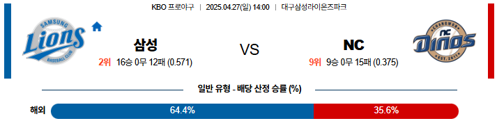 04월 27일 KBO 삼성 : NC KBO분석