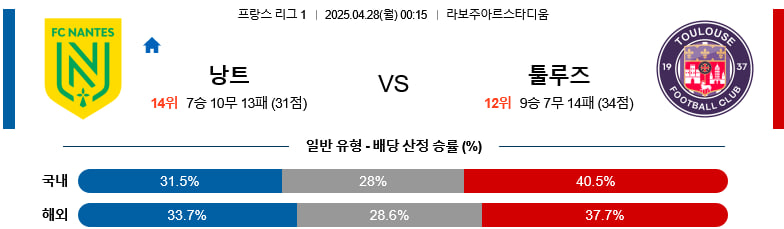 【리그앙 】04/28(월) FC낭트vs툴루즈