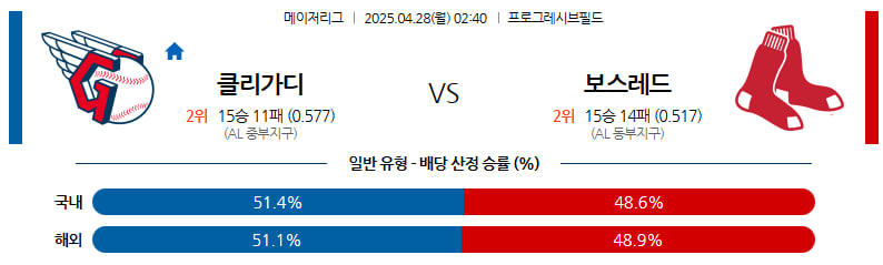 04월 28일 MLB 클리블랜드 보스턴 분석