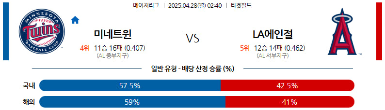 04월 28일 MLB 미네소타 LA에인절스 분석