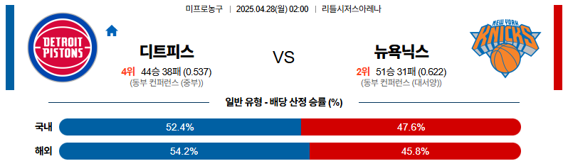 【NBA 】04/28(월) 디트로이트 vs 뉴욕닉스