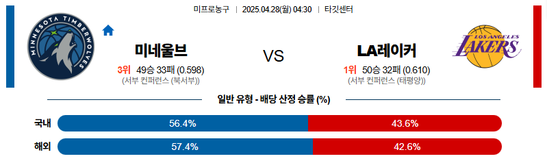 【NBA 】04/28(월) 미네소타 vs LA레이커스