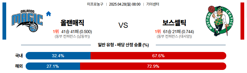 【NBA 】04/28(월) 올랜도 vs 보스턴