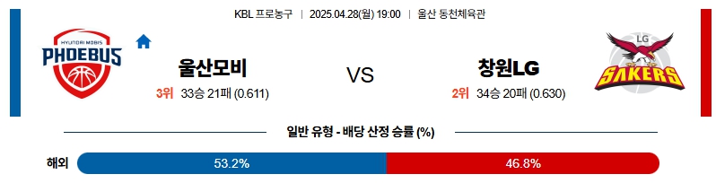 # 홈팀 : 울산 현대모비스(33승21패, 정규시즌 3위)