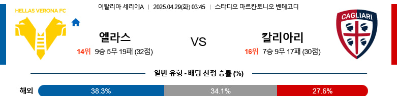 【세리에A】04/29(화) 헬라스베로나vs칼리아리