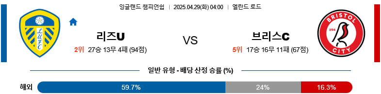 【챔피언쉽】04/29(화) 리즈유나이티드vs브리스톨시티