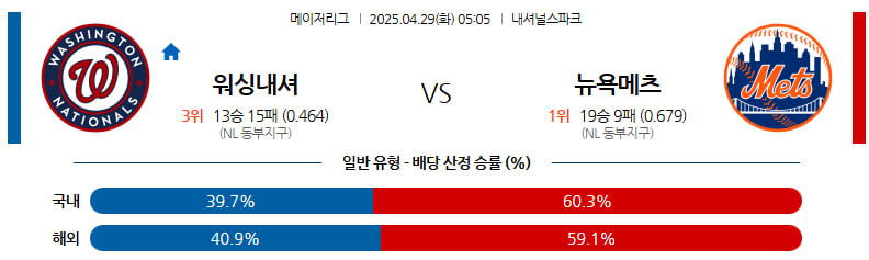 04월 29일 MLB 워싱턴 뉴욕메츠 분석