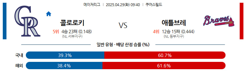 04월 29일 MLB 콜로라도 애틀랜타 분석