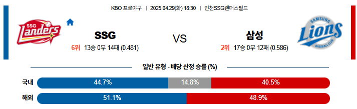 04월 29일 KBO SSG: 삼성 KBO분석
