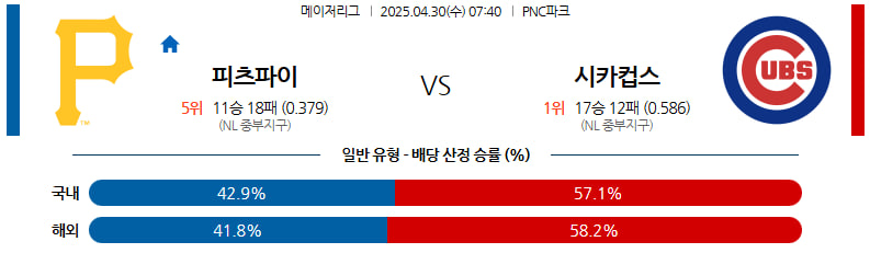 04월 30일 MLB 피츠버그 시카고C 분석