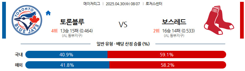 04월 30일 MLB 토론토 보스턴 분석