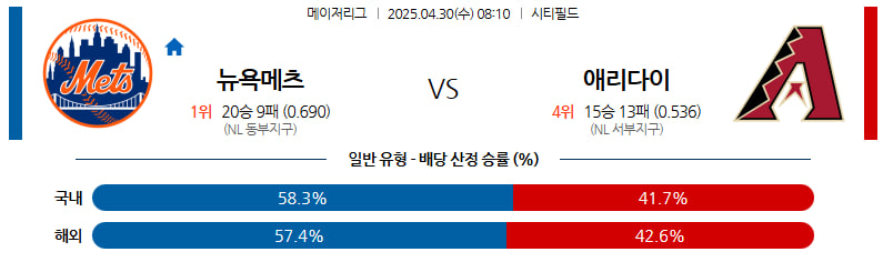 04월 30일 MLB 뉴욕메츠 애리조나 분석