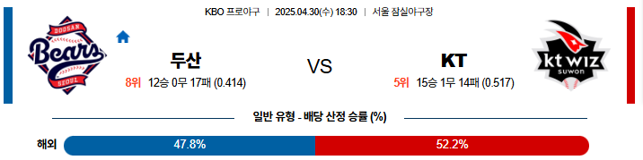04월 30일 KBO 두산: KT KBO분석