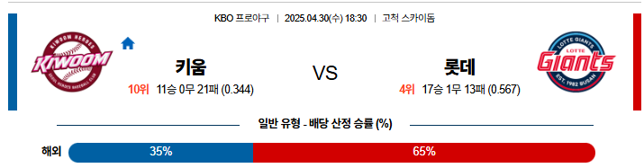 04-30 [KBO] 키움 vs 롯데 프리뷰 & 추천픽