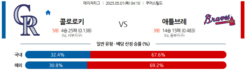 05월 01일 MLB 콜로라도 애틀랜타 분석