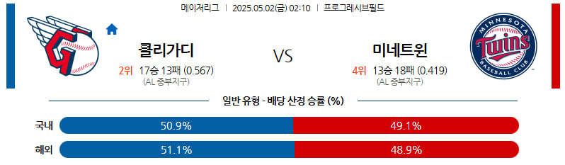 05월 02일 MLB 클리블랜드 미네소타 분석