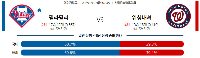 05월 02일 MLB 필라델피아 워싱턴 분석