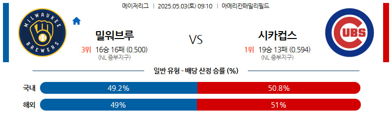 05월 03일 MLB 밀워키 시카고C 분석
