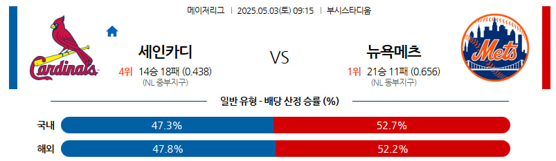 05월 03일 MLB 세인트루이스 뉴욕메츠 분석