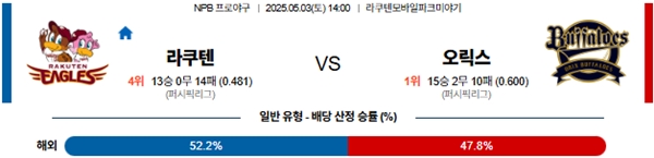 5월 3일 일본야구(NPB) 라쿠텐 VS 오릭스 분석