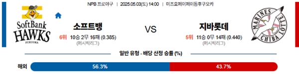 5월 3일 일본야구(NPB) 소프트뱅크 VS 지바롯데 분석