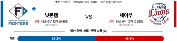5월 3일 일본야구(NPB) 니혼햄 VS 세이부 분석