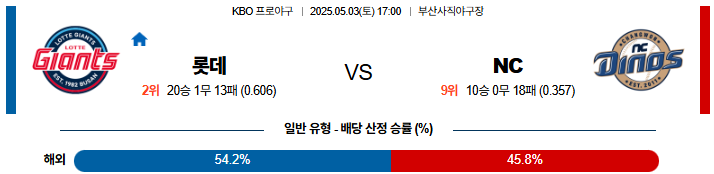 05월 03일 KBO 롯데 : NC KBO분석