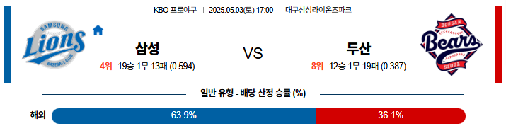05월 03일 KBO 삼성 : 두산 KBO분석
