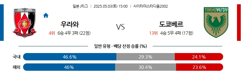 일본J리그】05월03일 우라와 레드 다이아몬즈 vs 도쿄 베르디