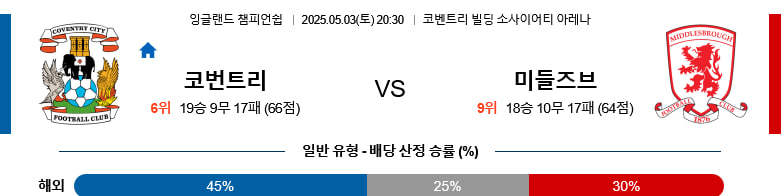 05/03(토) 코벤트리시티vs미들즈브러 잉글랜드챔피언쉽 분석
