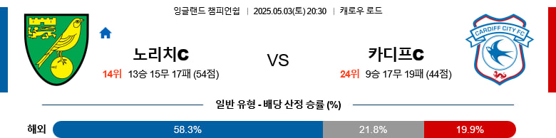 05/03(토) 노리치시티vs카디프시티 잉글랜드챔피언쉽 분석