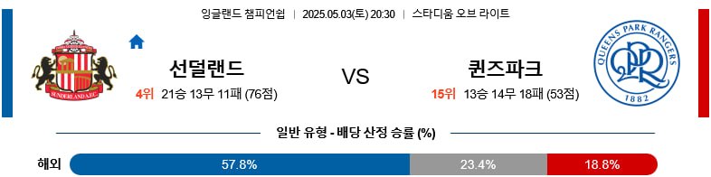 05/03(토) 선더랜드vs퀸즈파크레인저스(QPR) 잉글랜드챔피언쉽 분석