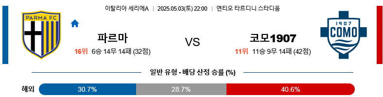 05/03(토) 파르마vs코모1907 세리에A 분석
