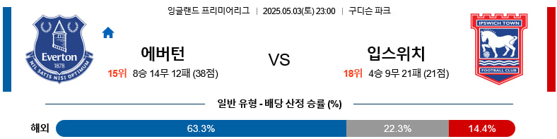05/03(토) 에버턴vs입스위치타운 EPL 분석