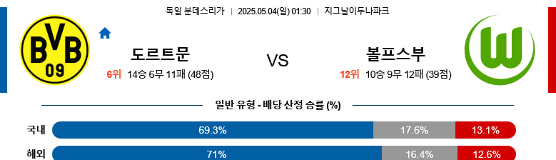 05/04(일) 도르트문트vs볼프스부르크 분데스리가 분석