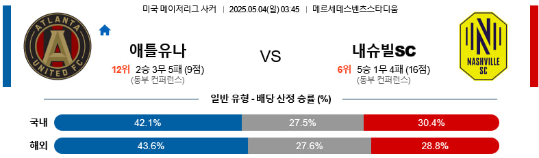 05/04(일) 애틀랜타유나이티드vs내슈빌SC MLS 분석