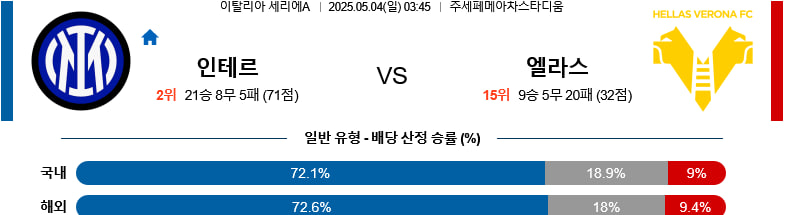 05/04(일) 인터밀란vs헬라스베로나 세리에A 분석