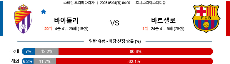 05/04(일) 레알바야돌리드vs바르셀로나 라리가 분석