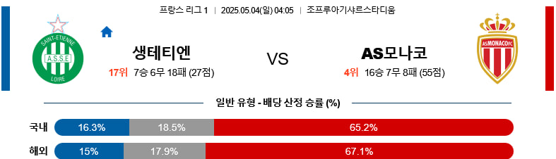 05/04(일) AS생테티엔vsAS모나코 리그앙 분석