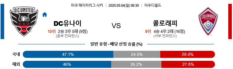 05/04(일) D.C.유나이티드vs콜로라도래피즈 MLS 분석