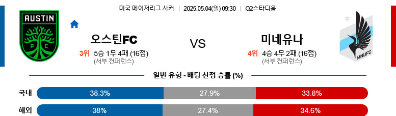 05/04(일) 오스틴FCvs미네소타유나이티드 MLS 분석