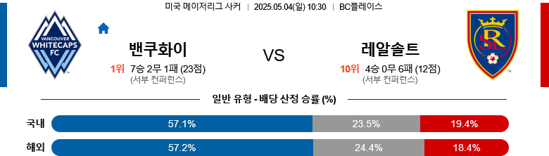 05/04(일) 밴쿠버화이트캡스vs레알솔트레이크 MLS 분석