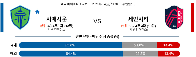 05/04(일) 시애틀사운더스vs세인트루이스시티 MLS 분석
