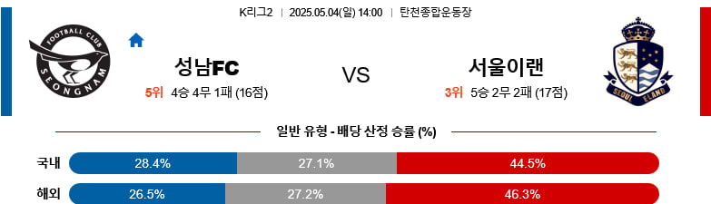 05/04(일) 성남FCvs서울이랜드 K리그2 분석